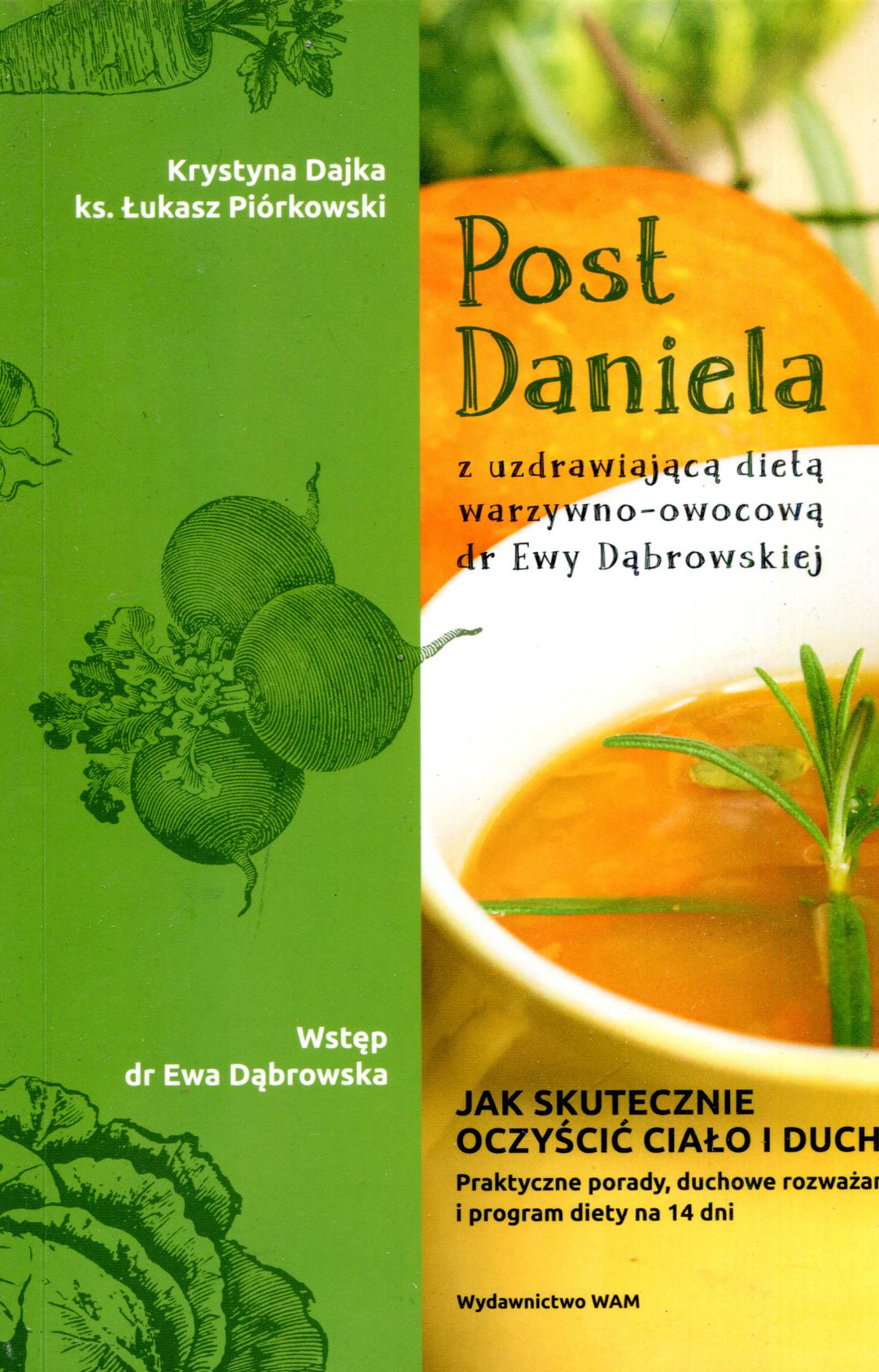 Słynna kuracja oczyszczająca ciało i ducha - nareszcie opisana w książce! Poddaj sługi twoje dziesięciodniowej próbie: niech nam dają jarzyny do jedzenia i wodę do picia (…). A po upływie dziesięciu dni wygląd ich był lepszy i zdrowszy niż innych młodzieńców, którzy spożywali potrawy królewskie (Dn 1,12-15). Potęgę tego biblijnego cytatu potwierdza współczesna medycyna. Post Daniela, dzięki swej prostocie, pomógł już tysiącom osób. W książce znajdziesz: Do podjęcia postu Daniela wystarczy Ci ta książka i trochę determinacji. Oczyść ciało i ducha w 14 dni. Autorka książki, Krystyna Dajka jest nie tylko entuzjastką postu Daniela, który sama wielokrotnie praktykowała, ale ma także wielki dar praktycznego przygotowywania tej diety i szkolenia na organizowanych od lat turnusach zdrowotnych. Ze Wstępu dr Ewy Dąbrowskiej Ksiądz Łukasz Piórkowski - kapłan diecezji krakowskiej, coach i trener, prowadzący program Telewizji Polskiej Ziarno. Głosi rekolekcje podczas turnusów postu Daniela prowadzonych przez Krystynę Dajkę. 14-dniowy program oparty na diecie warzywno-owocowej dr Ewy Dąbrowskiej, opisany krok po kroku, przepisy na każdy dzień kuracji, wszystkie niezbędne informacje potrzebne do podjęcia postu Daniela (jak się przygotować, kiedy podjąć post, co robić po zakończeniu kuracji), duchowe rozważania ks. Łukasza Piórkowskiego, które pomogą Ci uczynić z postu czas prawdziwej, duchowej odnowy.